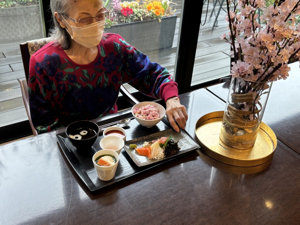 「美味しいね、きれいだね」と味覚と視覚で、春のひとときを楽しまれていました。