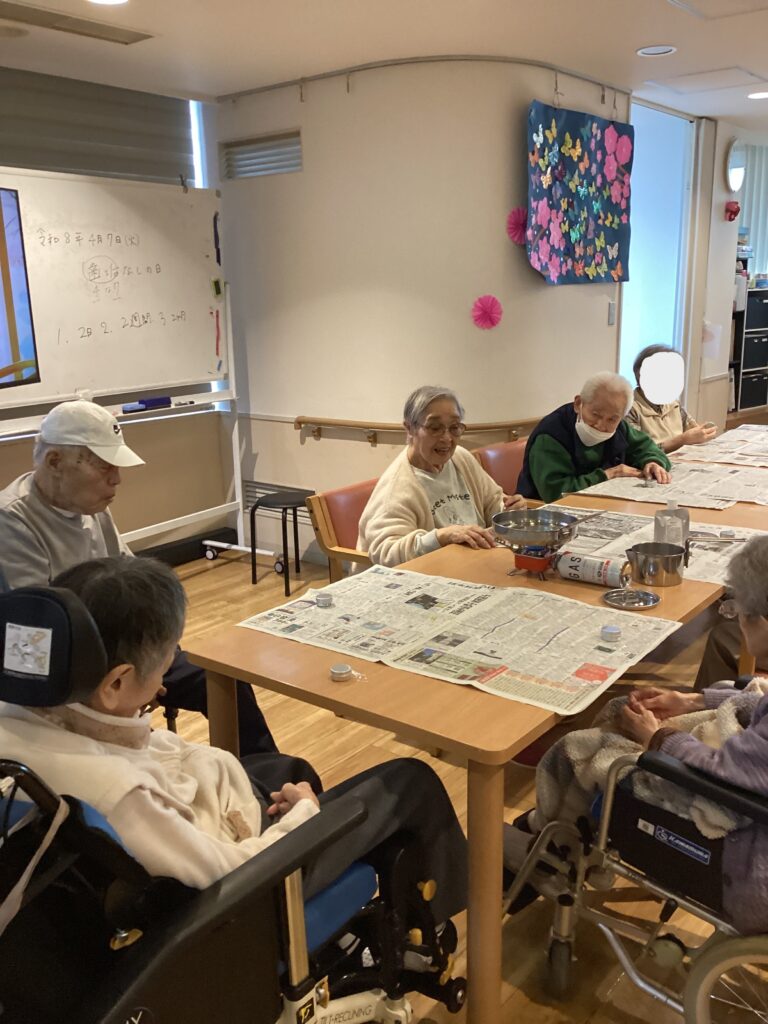 今日はデイの皆さんと一緒に、オリジナルハンドバームを1から手作りしました。