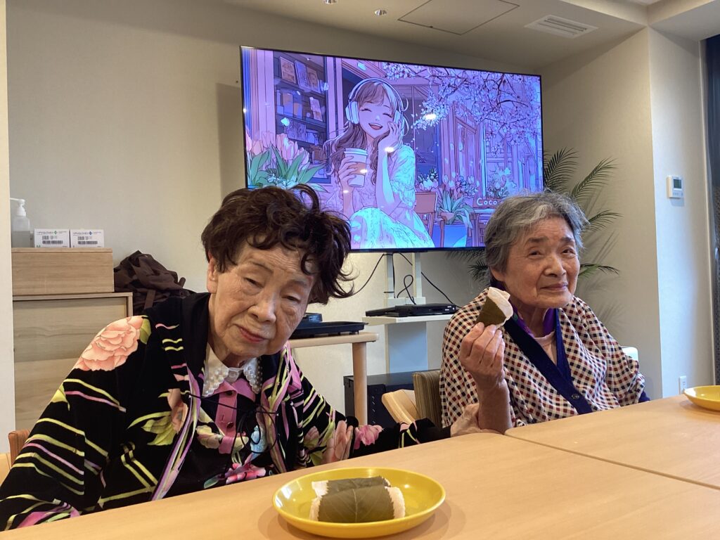 デイサービスのおやつレクにて、桜餅を作りました!