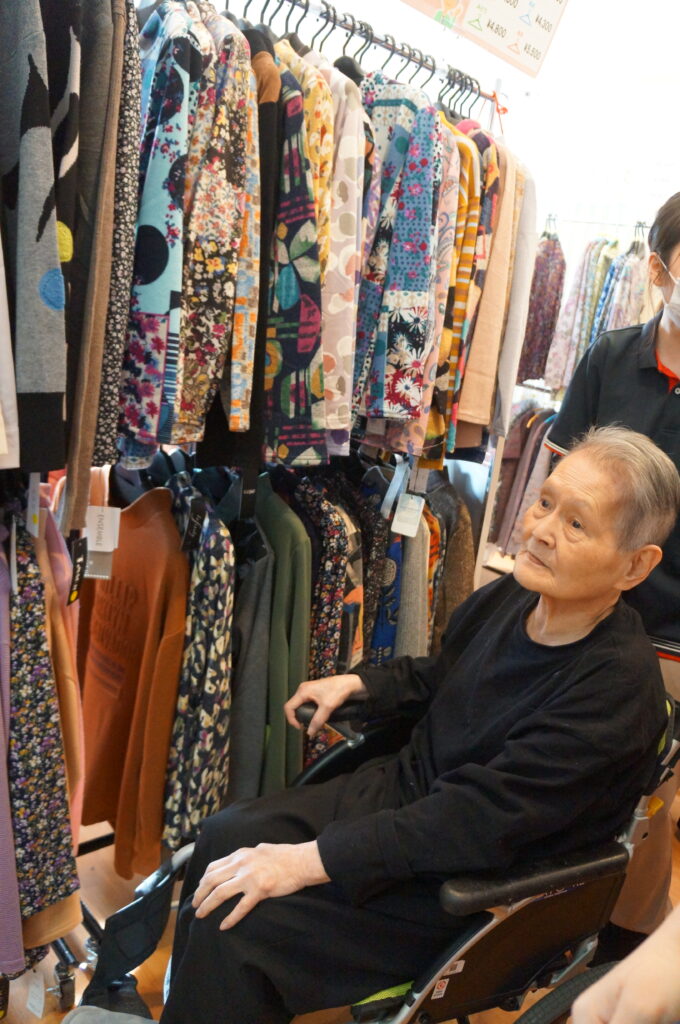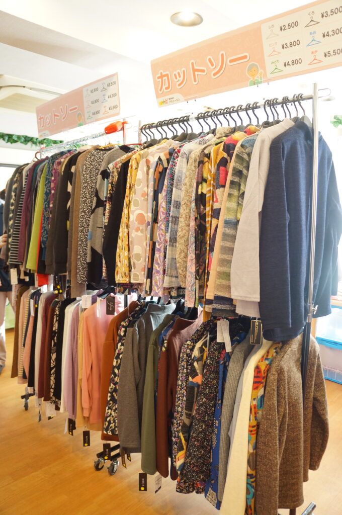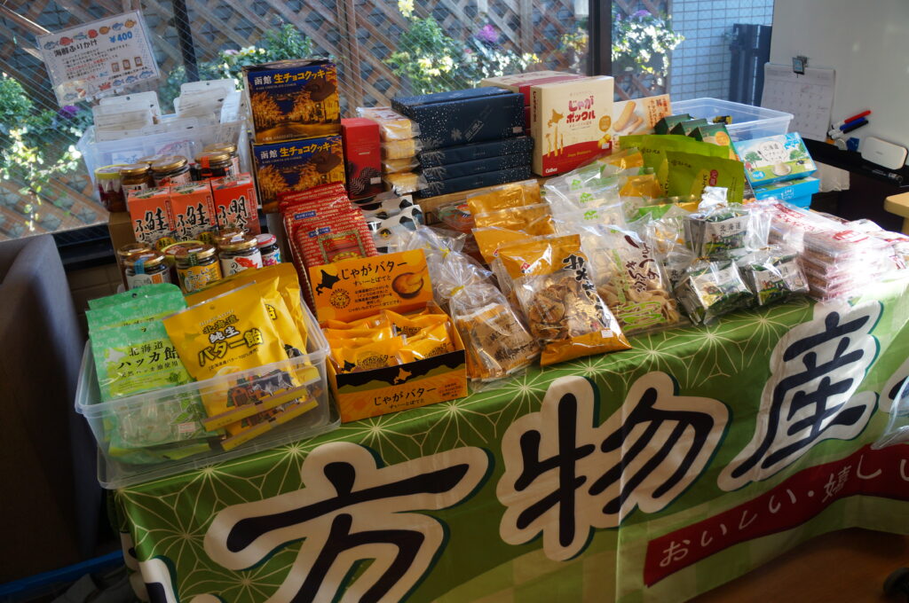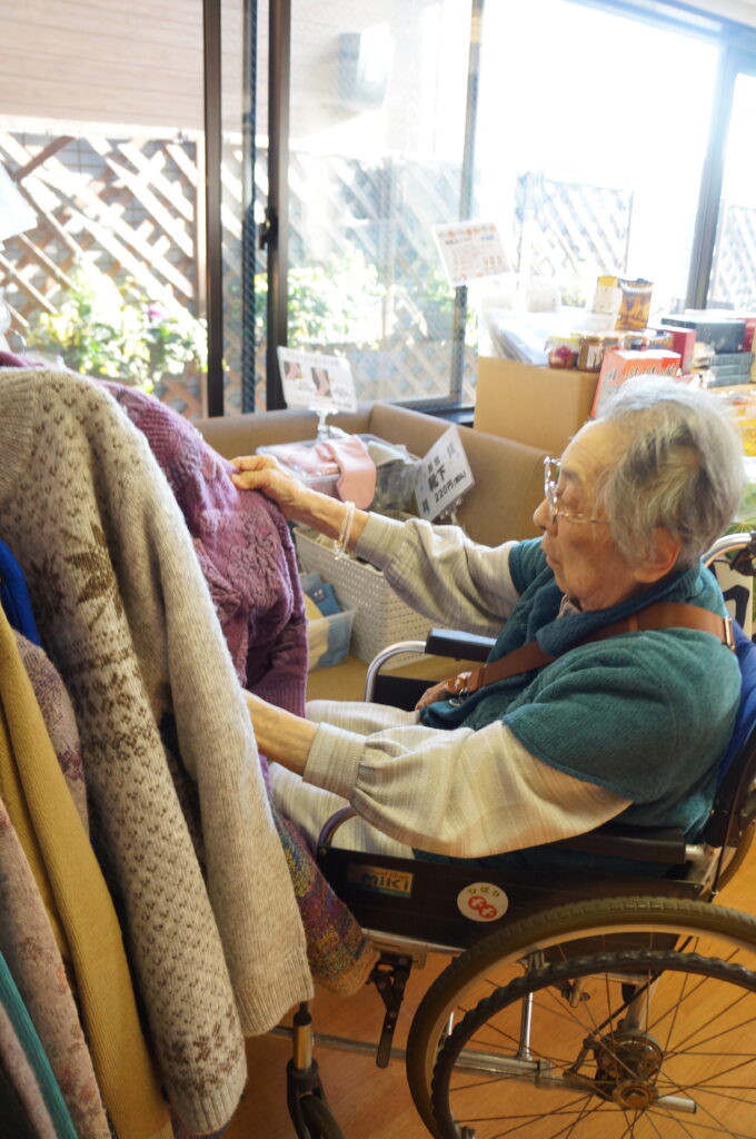 訪問販売の方に来ていただき、たくさんの衣類や物産展がありました。