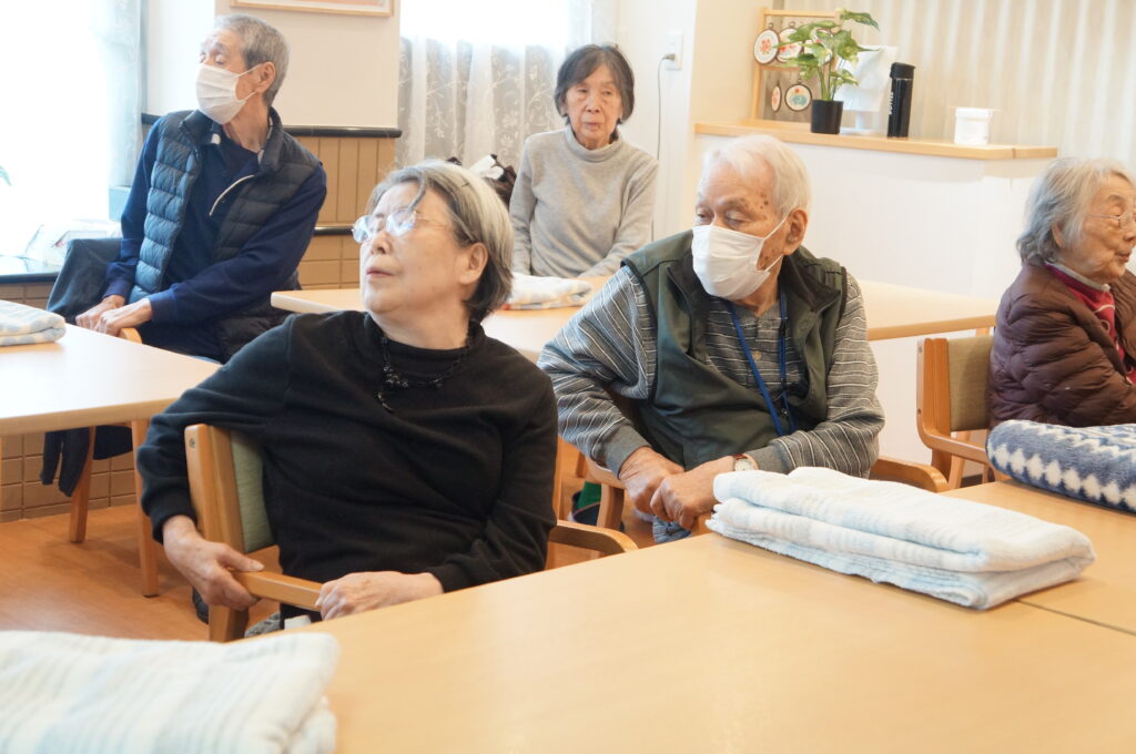 体操とマッサージで体も温まってきました。身体が温まると夜よく眠れるそうです。