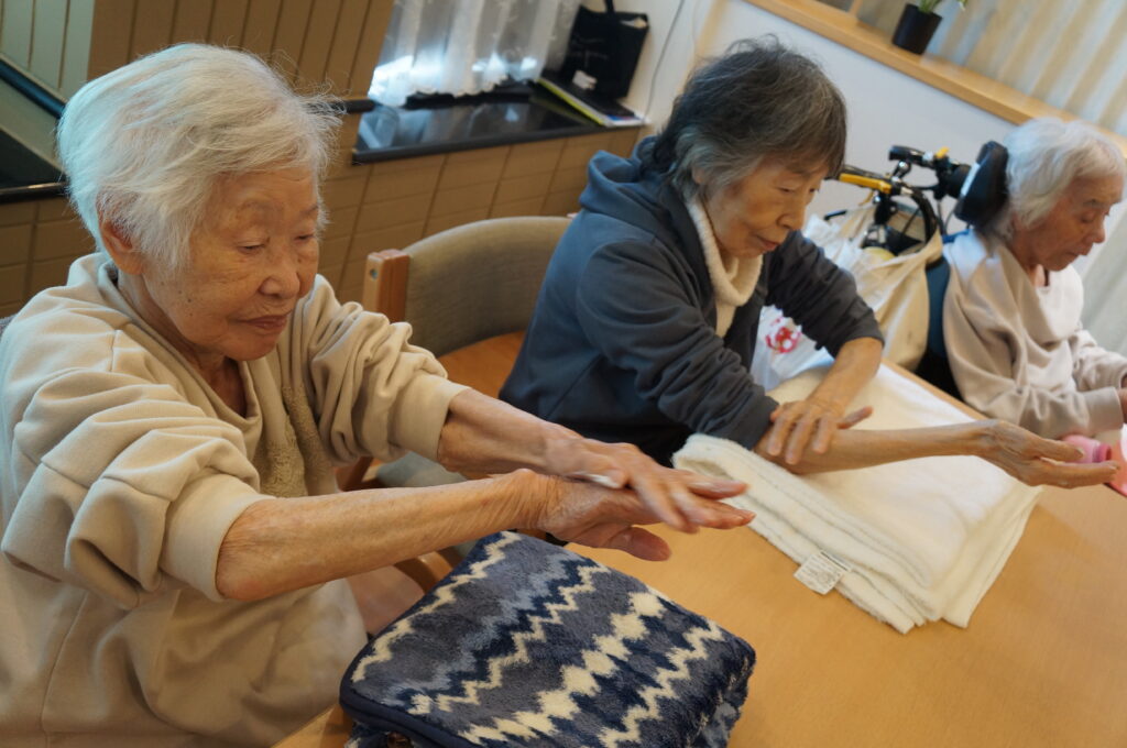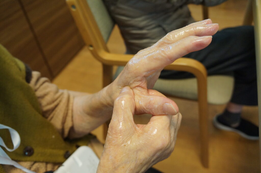 体操、ハンドマッサージ、ツボ押し、ヘッドマッサージなどフルコースで