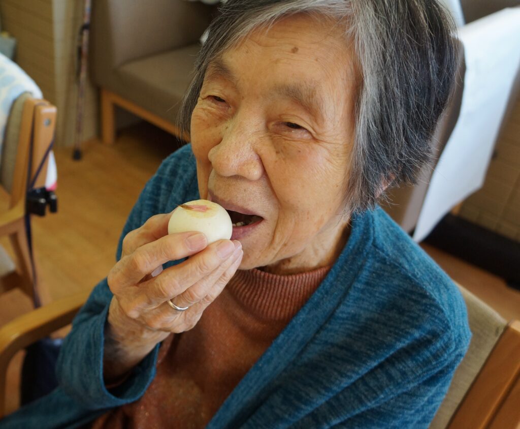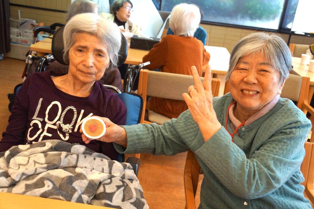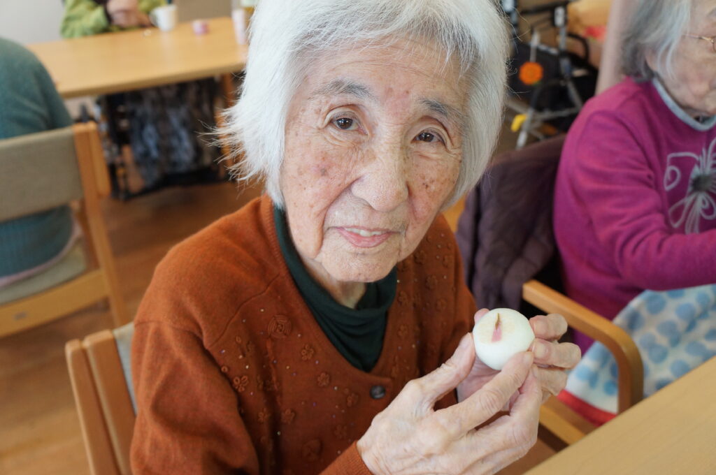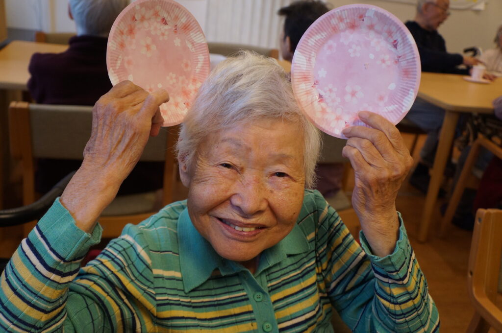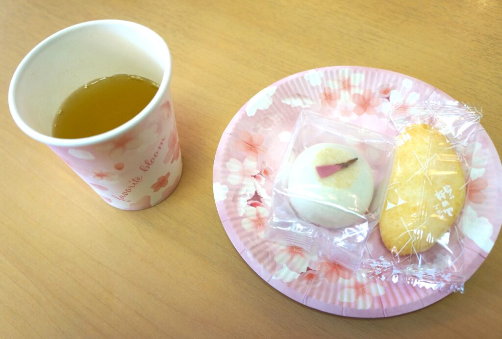 その代わりに施設内で桜の壁画レクの後に「さくら饅頭」と「さくら羊羹」を皆さんで召し上がっていただきました。