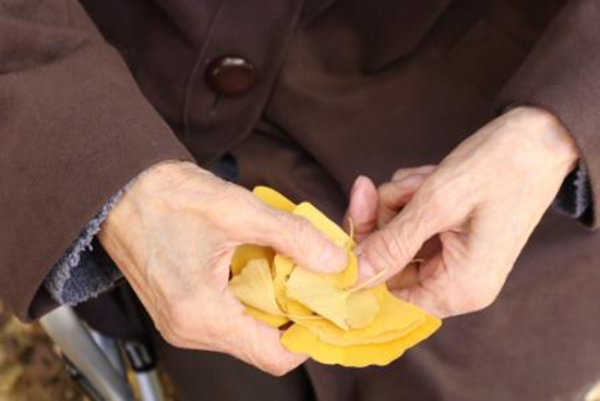 そしてお散歩から戻った際には「綺麗だったからどうぞ。」と銀杏の葉をプレゼントしていただくこともありました。私たちも秋のお裾分けを頂いたようで胸が温かくなりました。