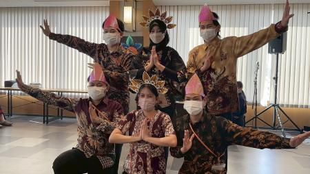 この踊りは、インドネシアの5つの地方の曲をミックスした創作ダンスで、曲に合わせて“伝統的な動き”が取り入れられています。