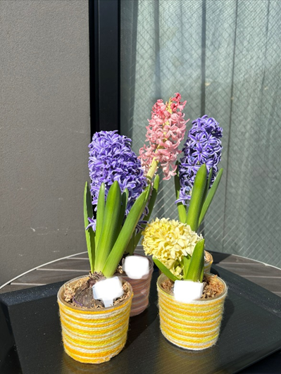 先日、園芸レクにてヒヤシンスのカラフルポット植えを行いました!