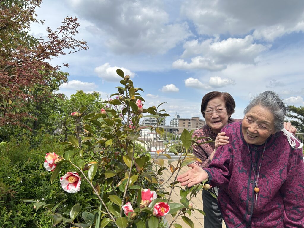 やがて見事に開花し、美しい紅白の花がスカイテラスを彩ります。