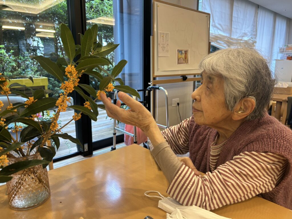 秋の訪れを少しでも感じていただきたく『金木犀』を飾り五感で楽しんでいただきました。