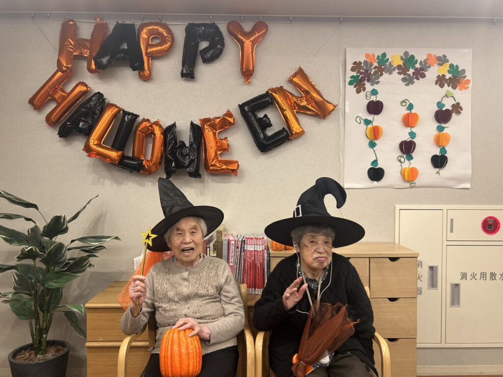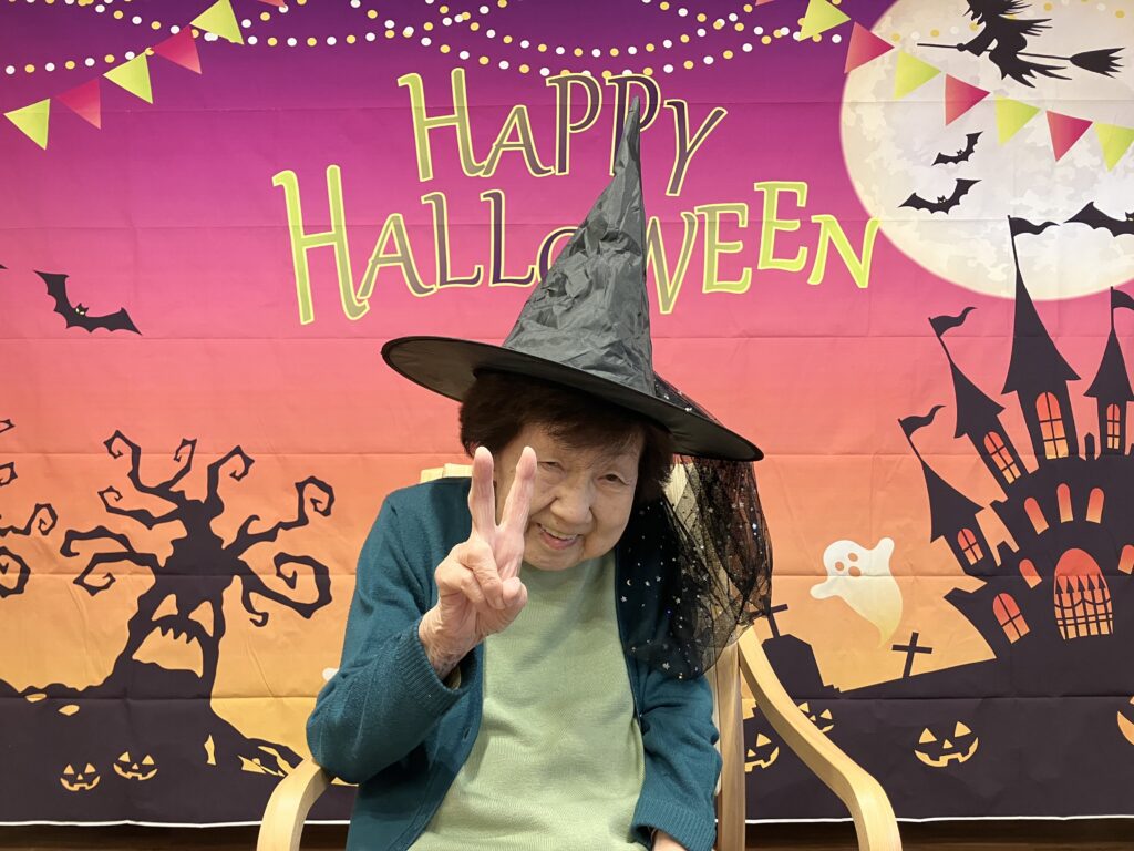食堂もハロウィン仕様になり大きな垂れ幕の前で皆様仮装して写真を撮りました。