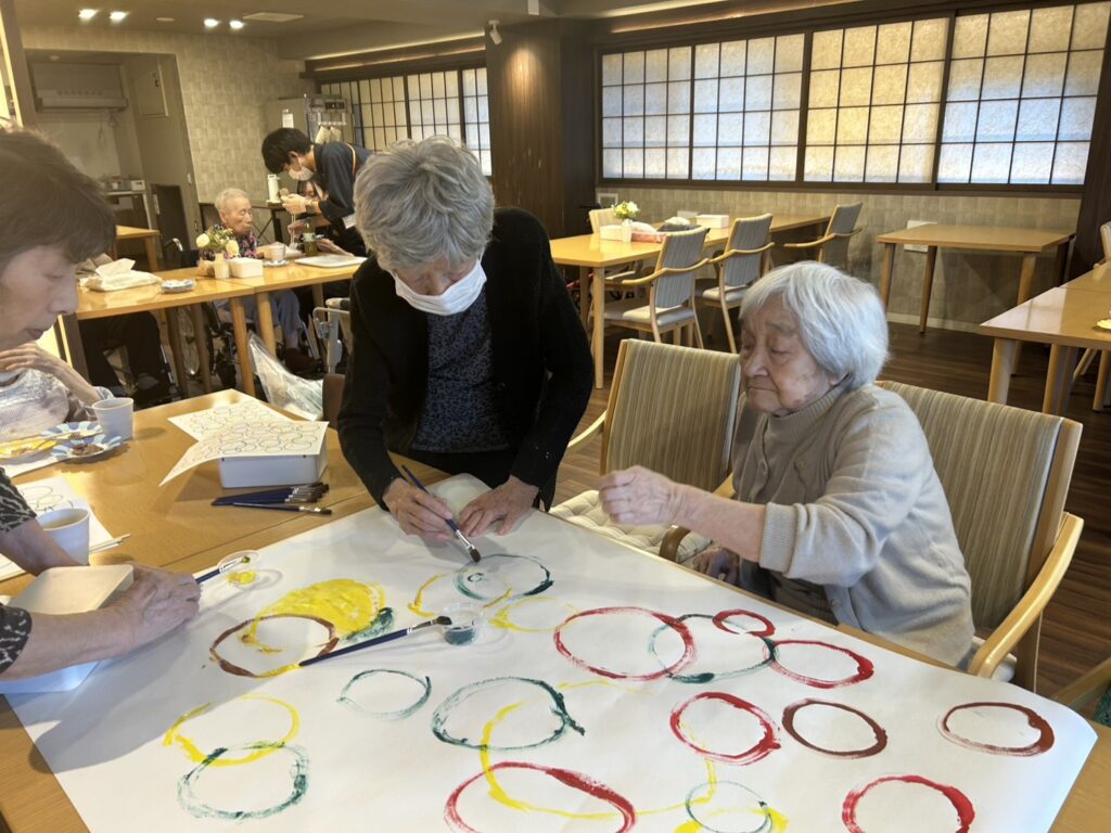秋と言えばの色を使って皆様思い思いに筆を進めていきます。