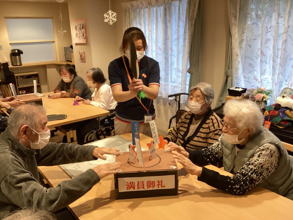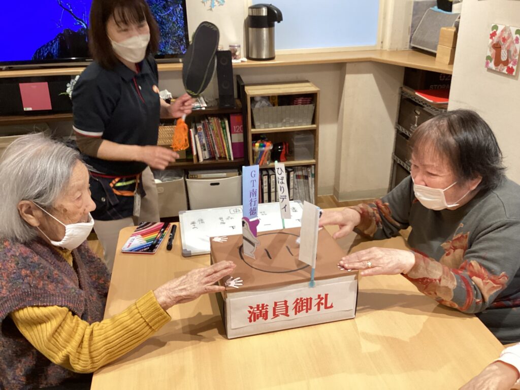 土俵も軍配も全て職員の手作りで開催しました、『紙相撲・GT南行徳場所』。