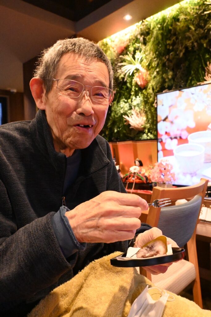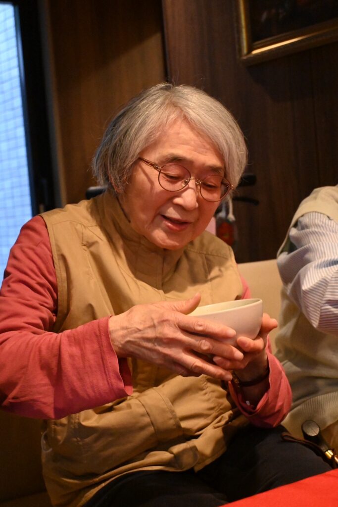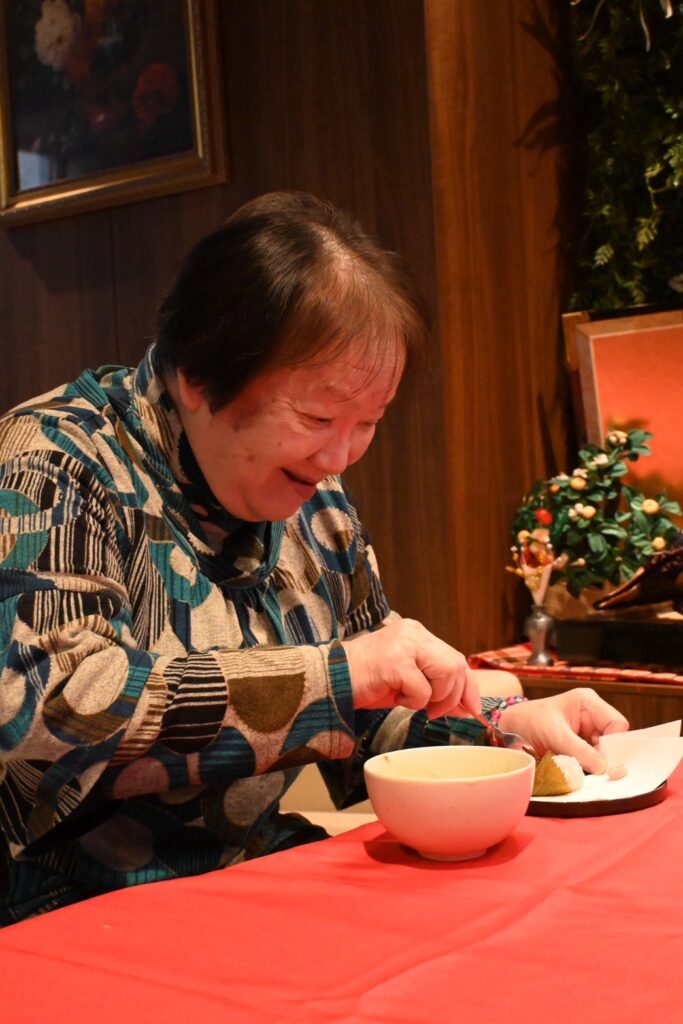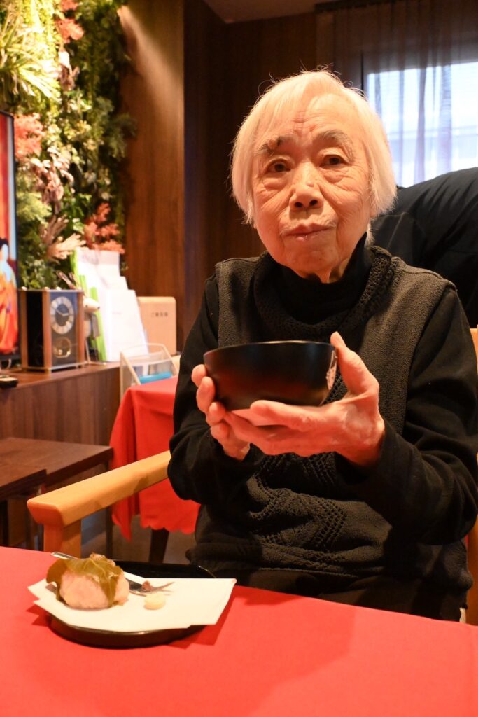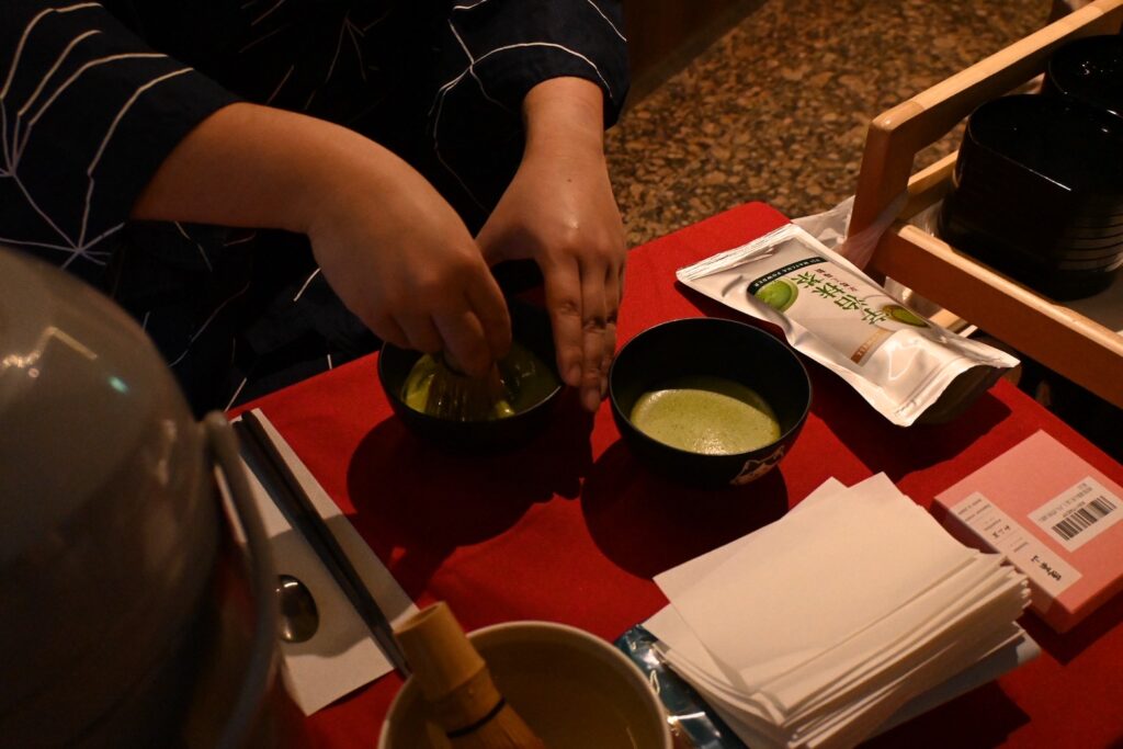 実際に抹茶を点てて、桜餅とお菓子を提供。抹茶のあの香りが広がって優雅なひとときな流れていました。