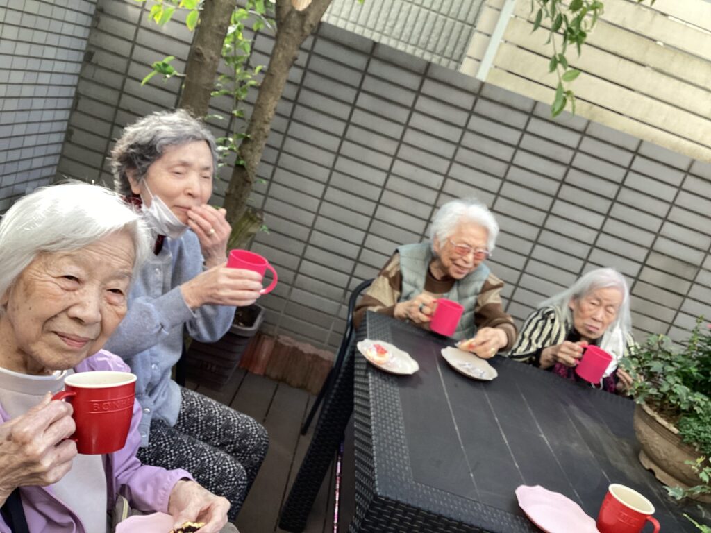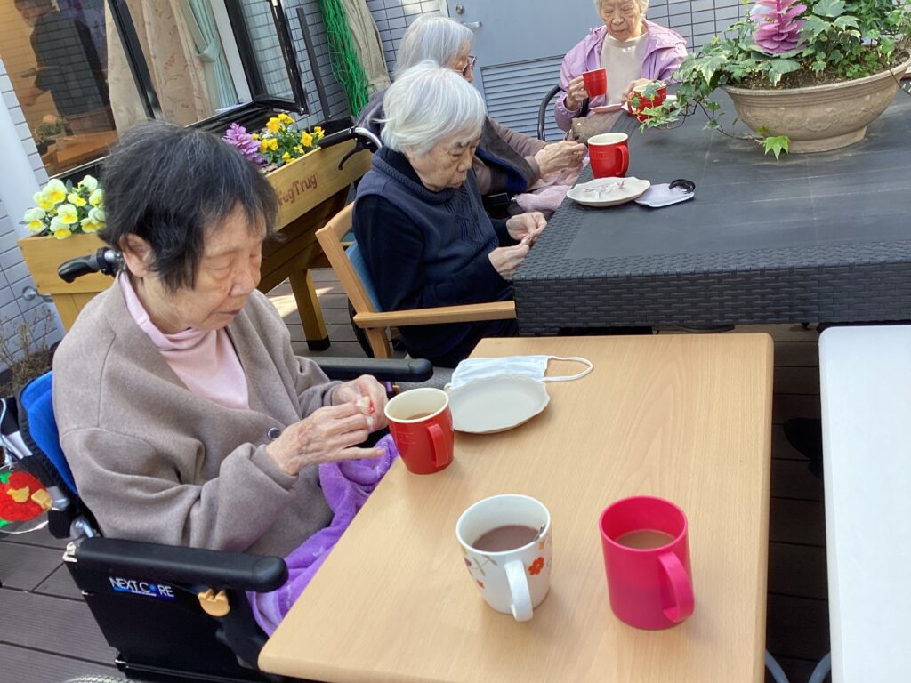 天気のいい日、気温も暖かい日にテラスに出て、ティータイム。