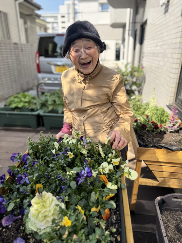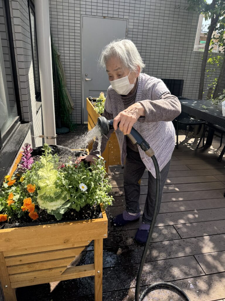 花壇の水やりや咲いている花を愛でながら、「春はもうすぐだね~」と話が弾みました!