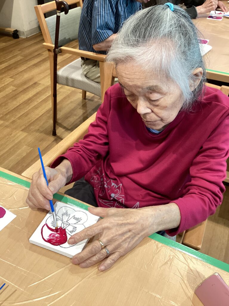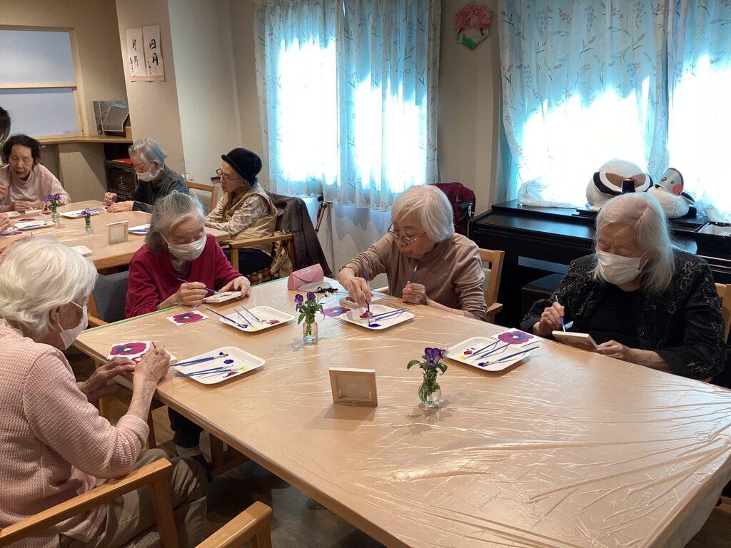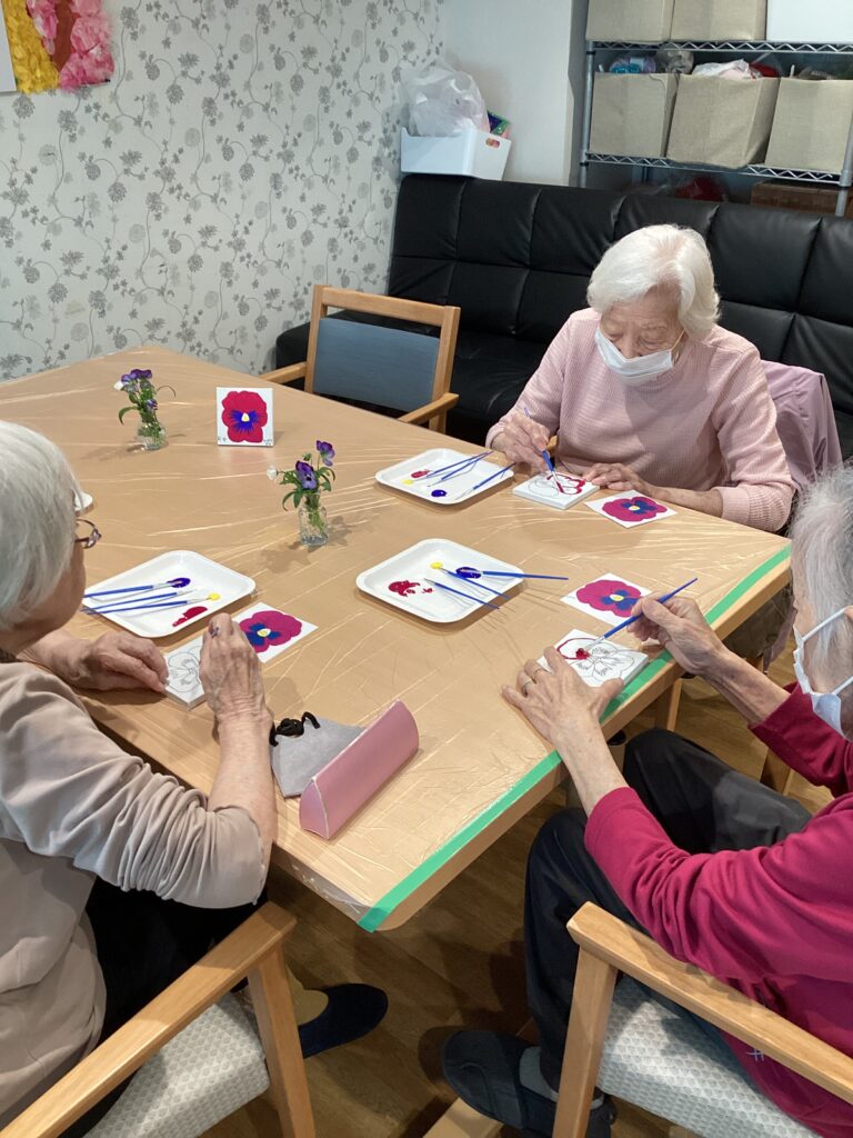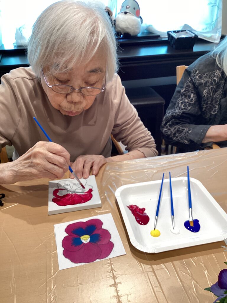 皆さん、真剣な表情でビオラに色を付けています!