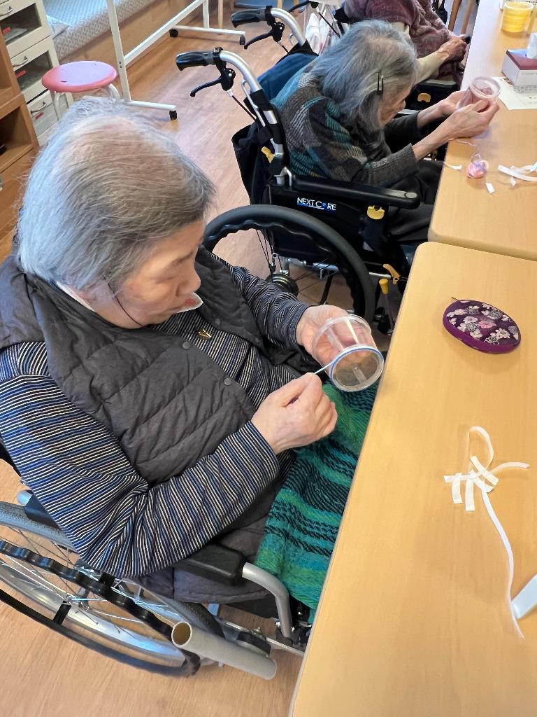 水苔を詰めて仕上がりました。どんなお花が咲くか皆様、楽しみにされていました。