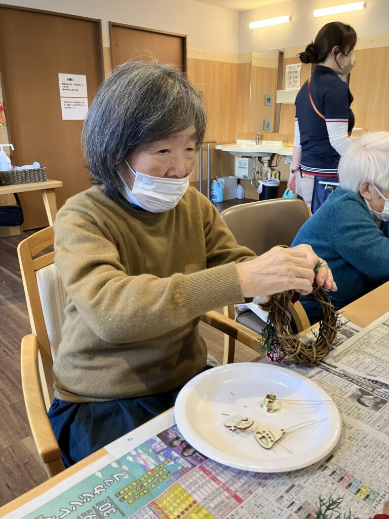 ガーデンテラス相模原デイサービスでは、園芸レクの一環として、「クリスマスリース」を作りました。