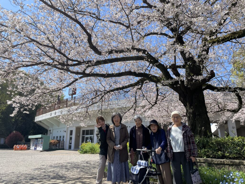 春のやわらかな陽ざしに包まれながら、入居者様と横山公園へ桜のお花見へ行きました。