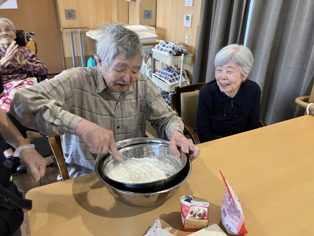 苺を狩るところから、生地作り、ホイップまで全てご利用者様と手作りで進めました!