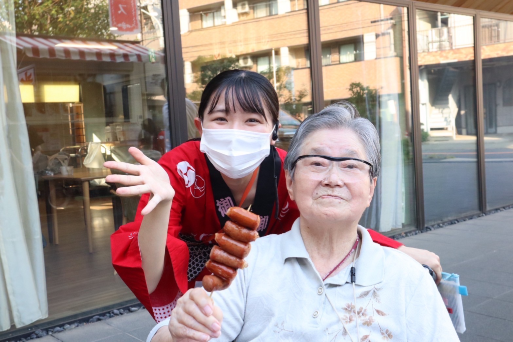 お好み焼き、フランクフルト、チョコバナナ、甘酒が振る舞われ、