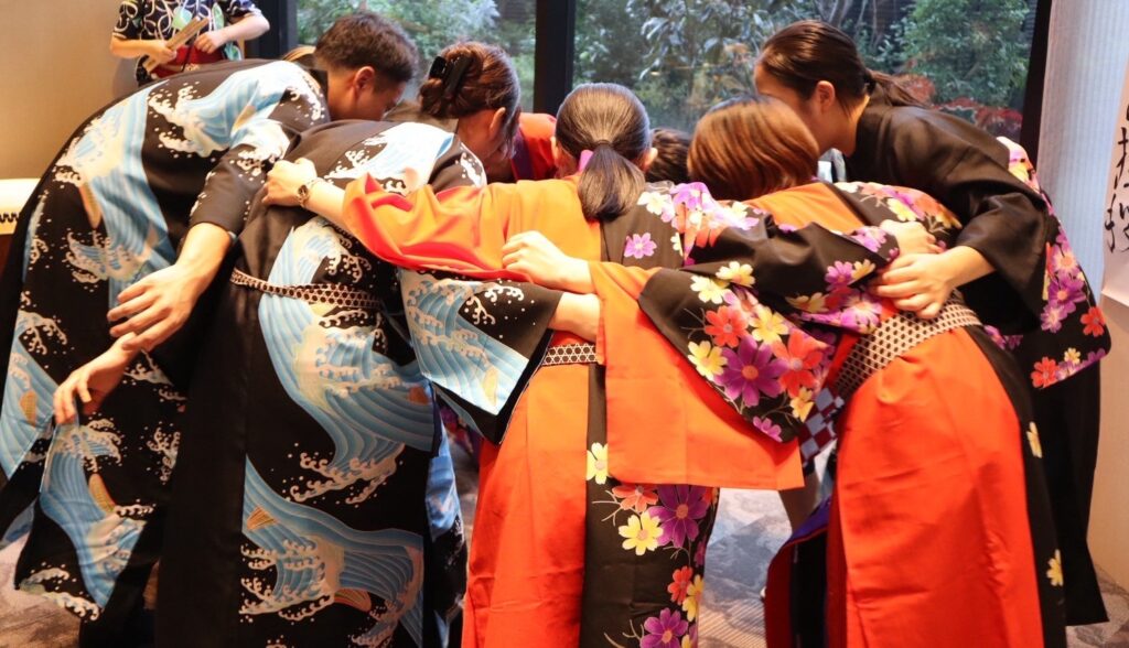 円陣を組み、気合いを入れた上でいざ本番に臨みます。