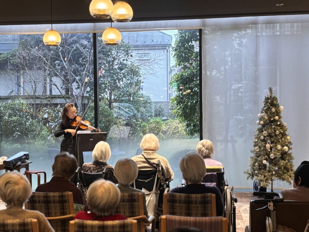 ガーデンテラス仙川の職員がハンドベル演奏を披露。