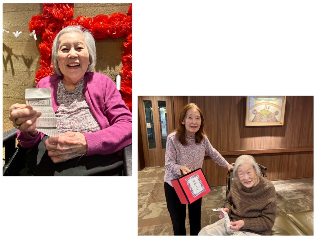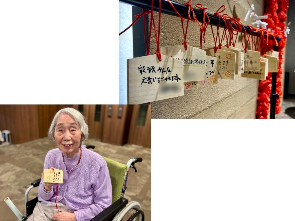 ご入居者様やご家族様に、館内にいながら少しでも初詣気分を味わっていただきたい、という思いから企画した本イベント。