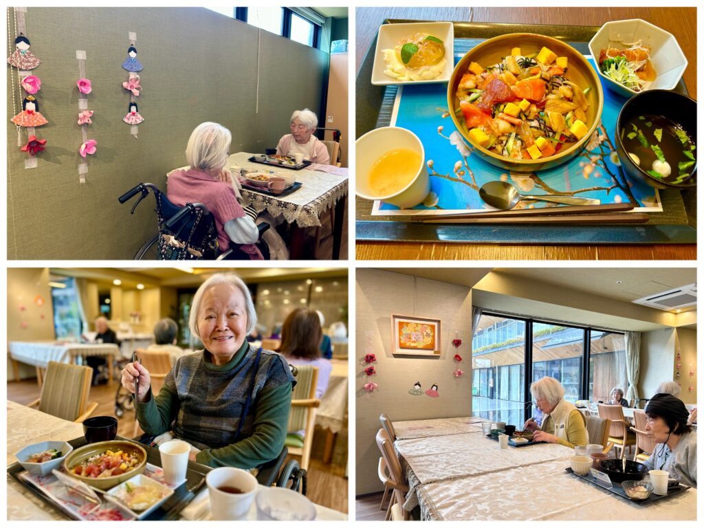 また、ひなまつり当日は、お客様が心を込めて作られたひな飾りに囲まれながら、特別なランチをお楽しみいただきました。