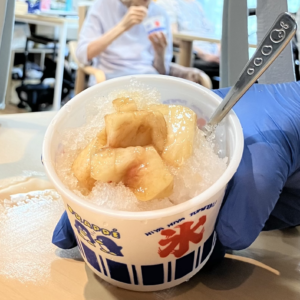 旬のフルーツである桃を使ったかき氷をお客様と作り、堪能いたしました。