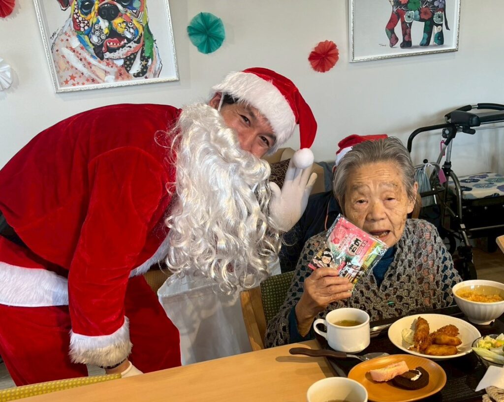 突然のサンタさんの登場に、利用者さまからは驚きと笑顔があふれ、