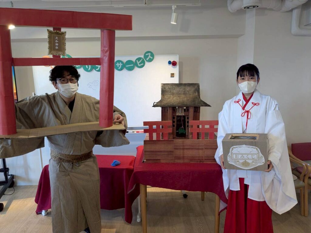 今年は、施設内に手作りの神社が登場し、皆さまに初詣気分を味わっていただきました。