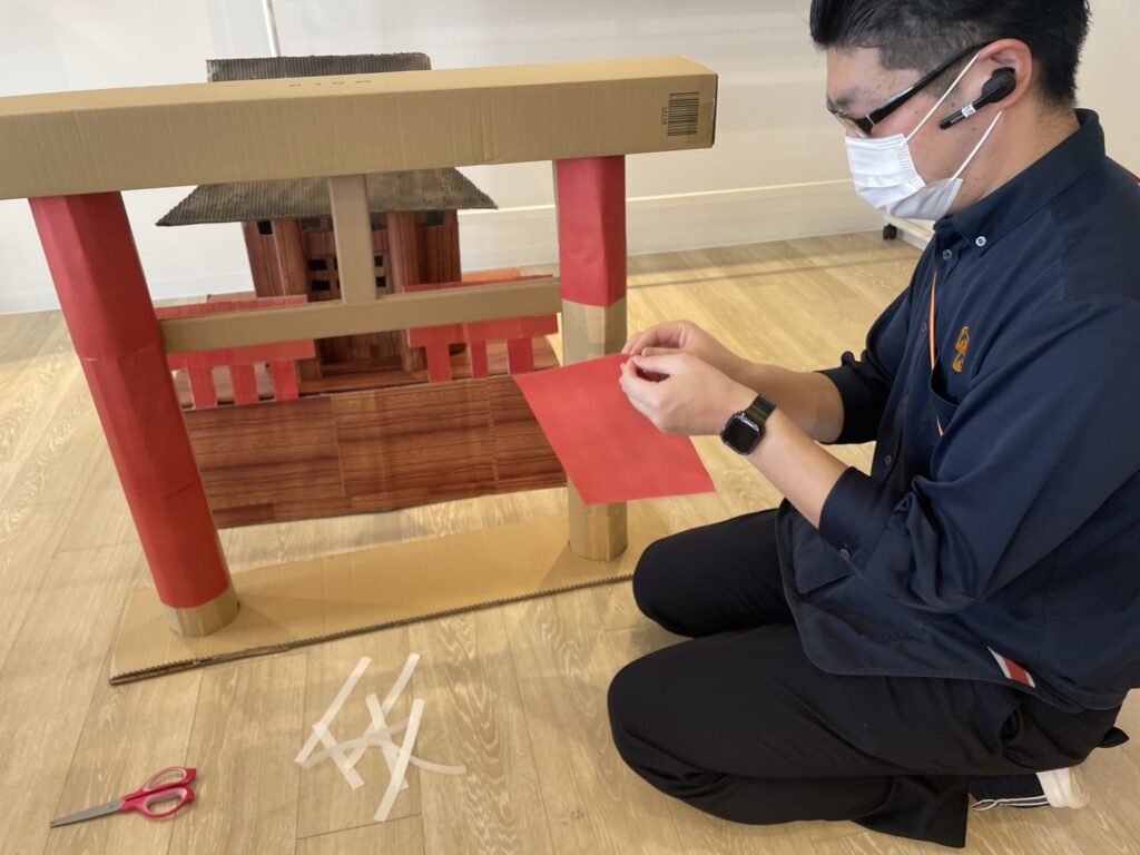 この手作り神社は、職員が試行錯誤しながら一から制作したものです。
