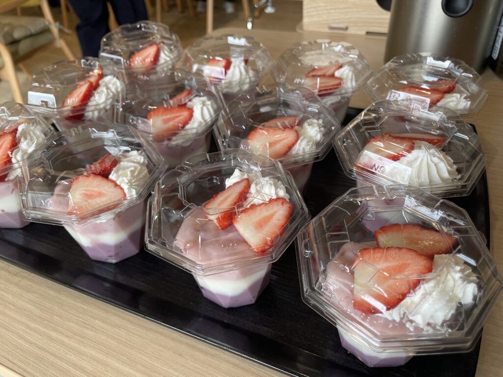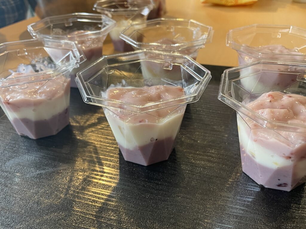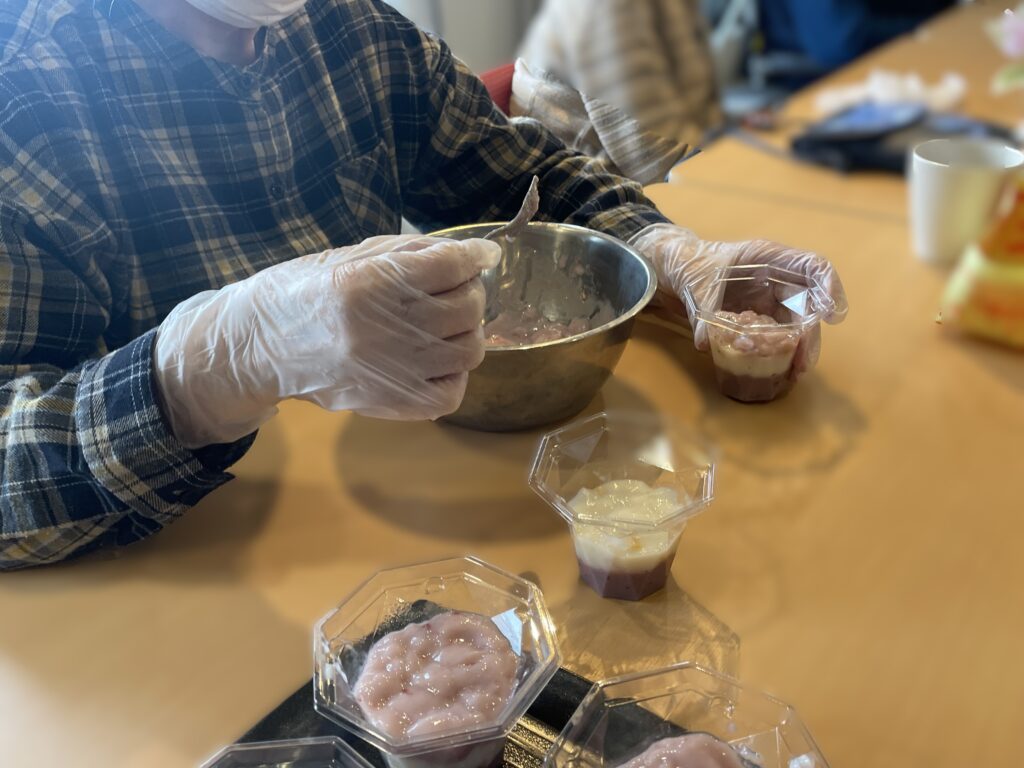 また、おやつ作りではフルーチェを使った三層デザート作りにも挑戦しました。