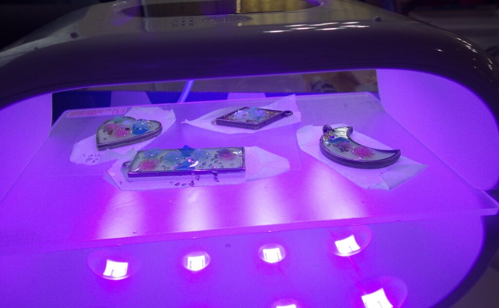 お好きな枠を選び、着色をし、ビーズやお花のパーツを入れて頂きました。