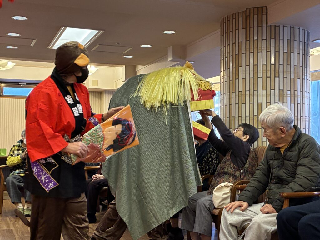 今年も健康で過ごせますよう願いを込め、おめでたい曲に合わせて獅子舞がまわります。