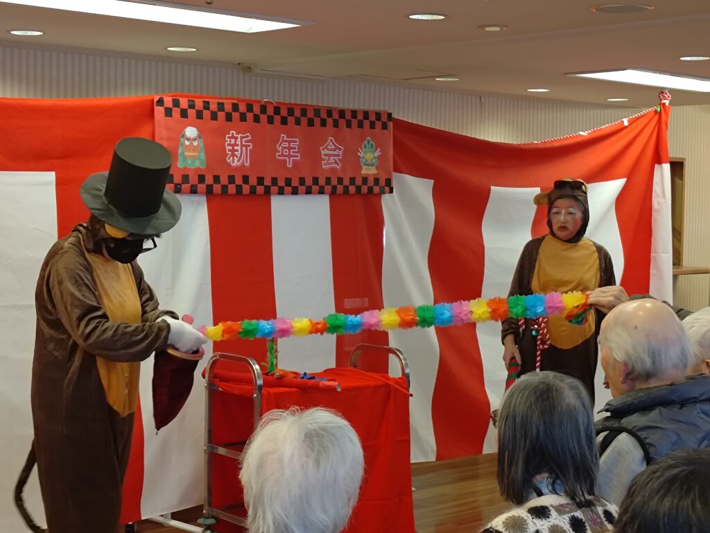 挨拶もそこそこに、手品、おみくじ、ティーパーティーの催しを行いました。